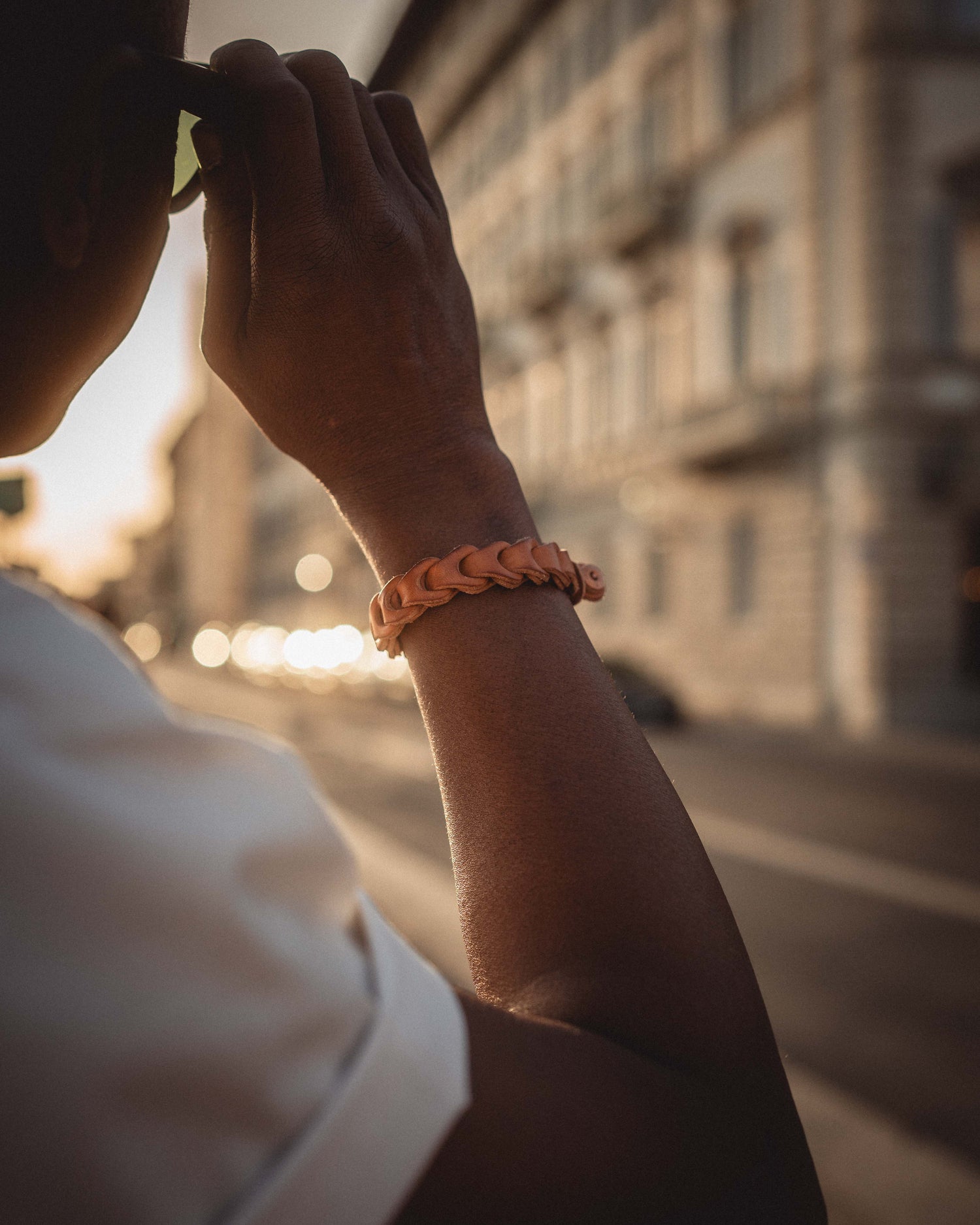 このブレスレットはシンプルな装いに、さりげないアクセントを加えてくれるアイテムです。