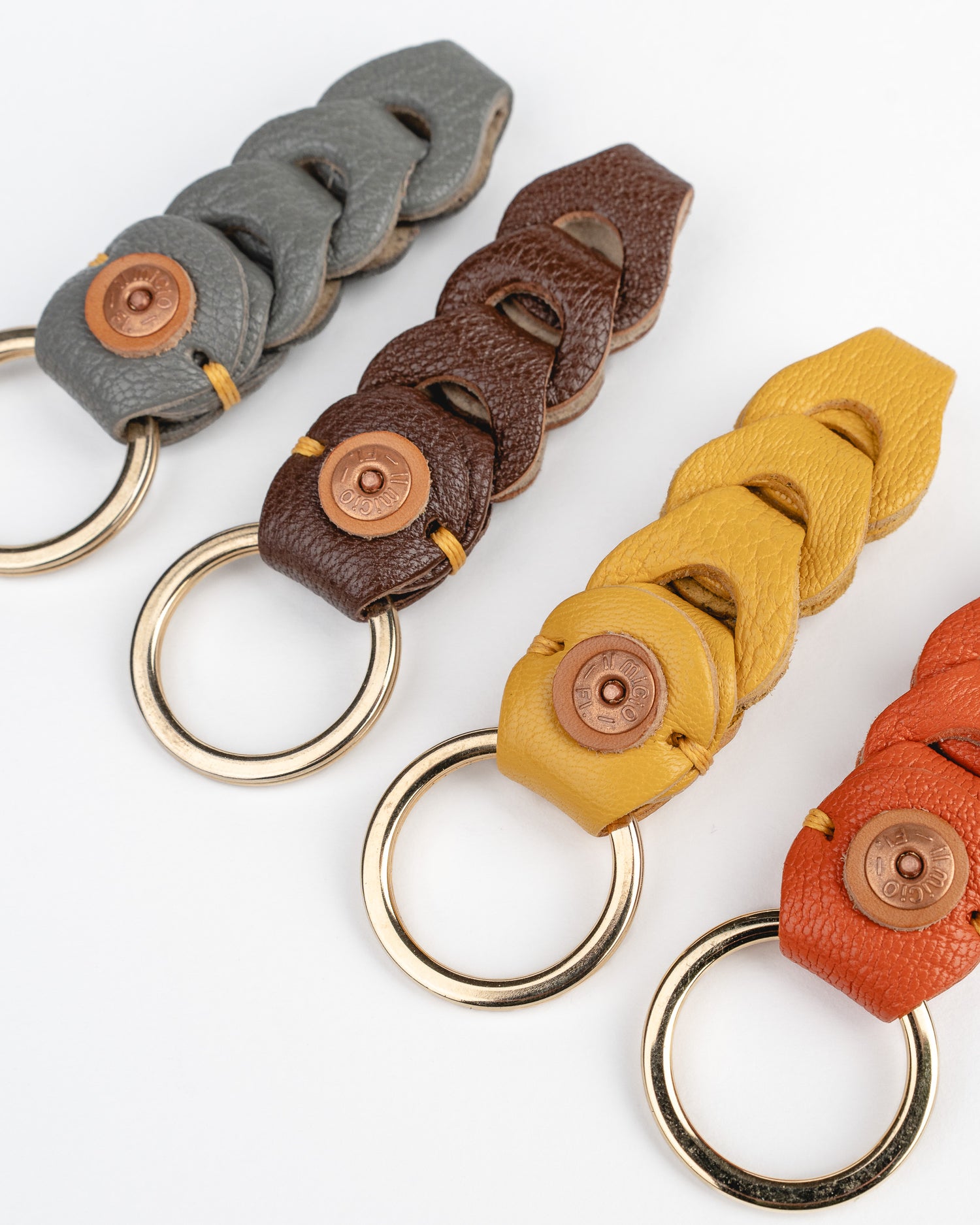 New additions to our online-exclusive keyholders. Compact palm-sized charms balance playful designs with refined textures – available in vivid textured Bull leather and glossy Chèvre leather variants. Perfect as key accents or bag charms.